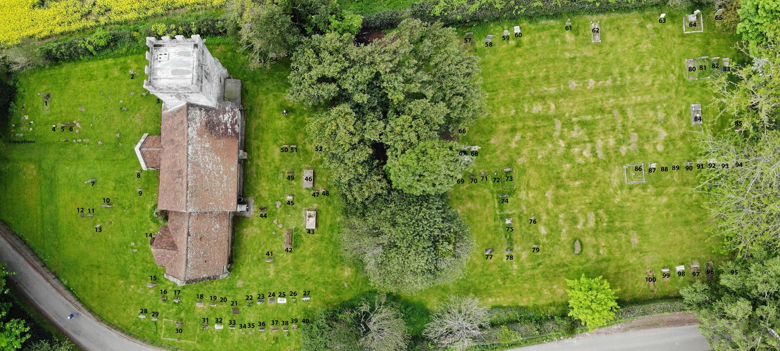 1 Full view of the Haseley Graveyard annotated with grave numbers