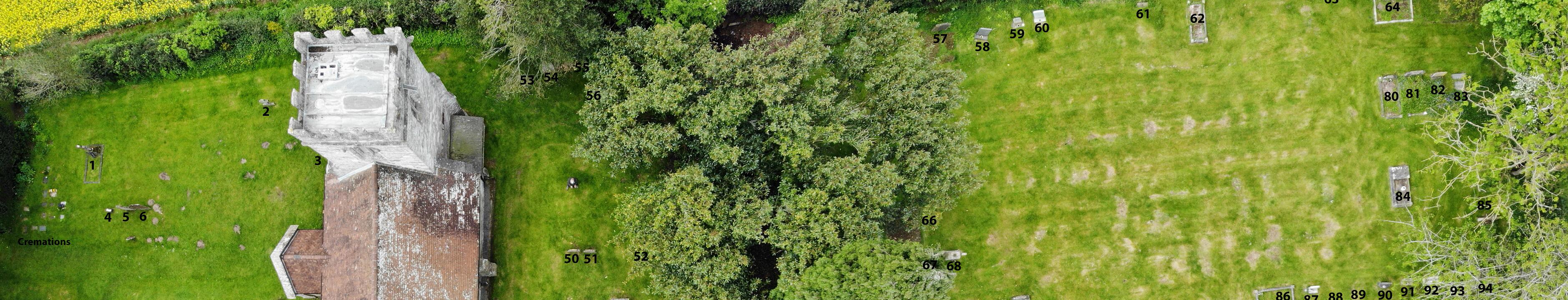 1 Full view of the Haseley Graveyard annotated with grave numbers