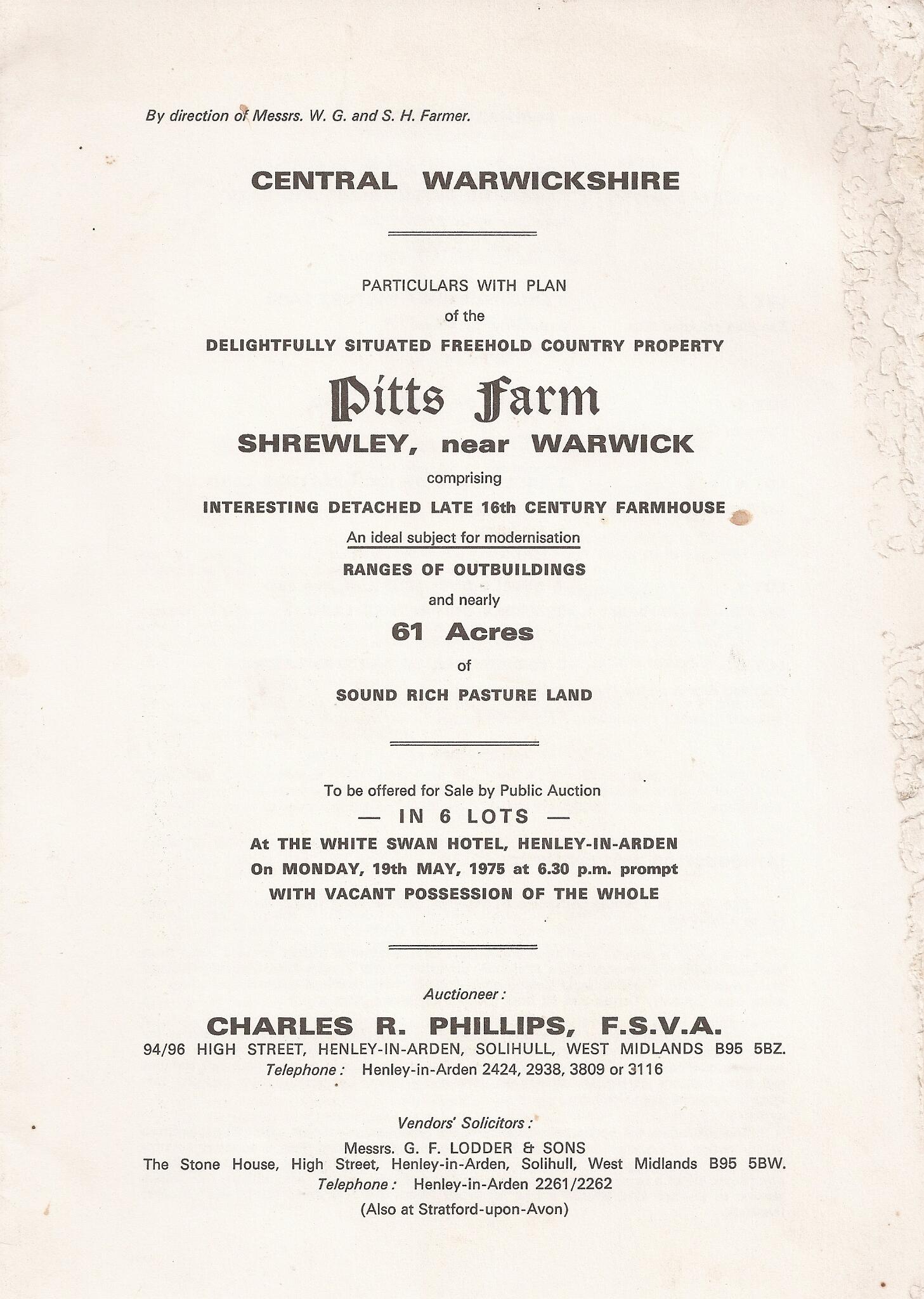 1 Five Farmer brothers who moved to Hill Farm, Langley from Himbleton, Droitwich.Standing L to R: Thomas, Walter, James, Henry Percy. Seated: James Herbert, Hudson Elija 2 3 Pitts Farm sale 1975 4 Pitts Farm sale 1975 5 Pitts Farm sale 1975 6 Pitts Farm sale 1975 7 Pitts Farm sale 1975 8 Pitts Farm sale 1975 9 Map from Pitts Farm sale 1975 10 Pitts Farm sale 1975 New images High Field Farm