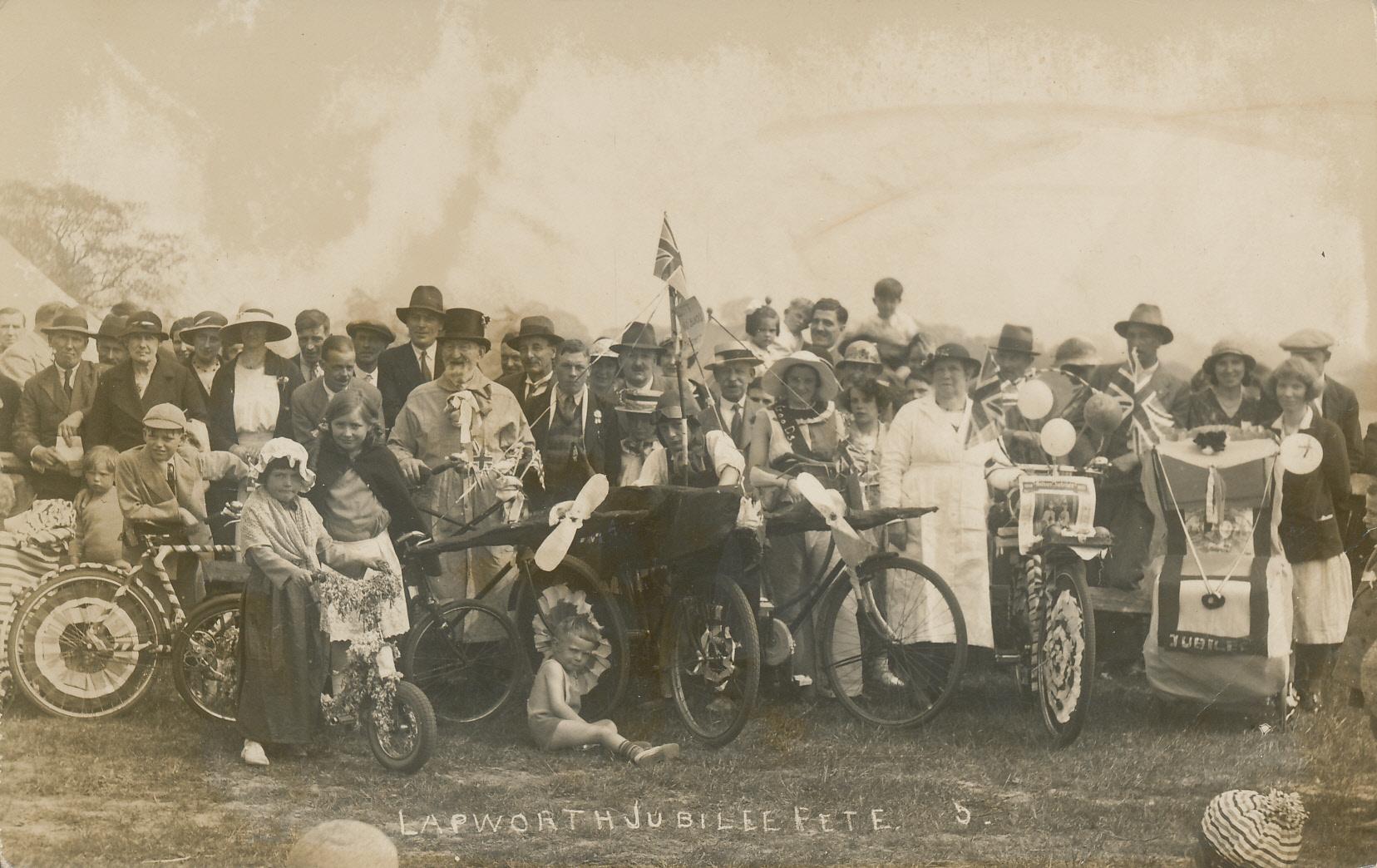 3 An under 14 fancy dress competition. 1937 Coronation celebrations. Soldier in the front row is Theo Christophers