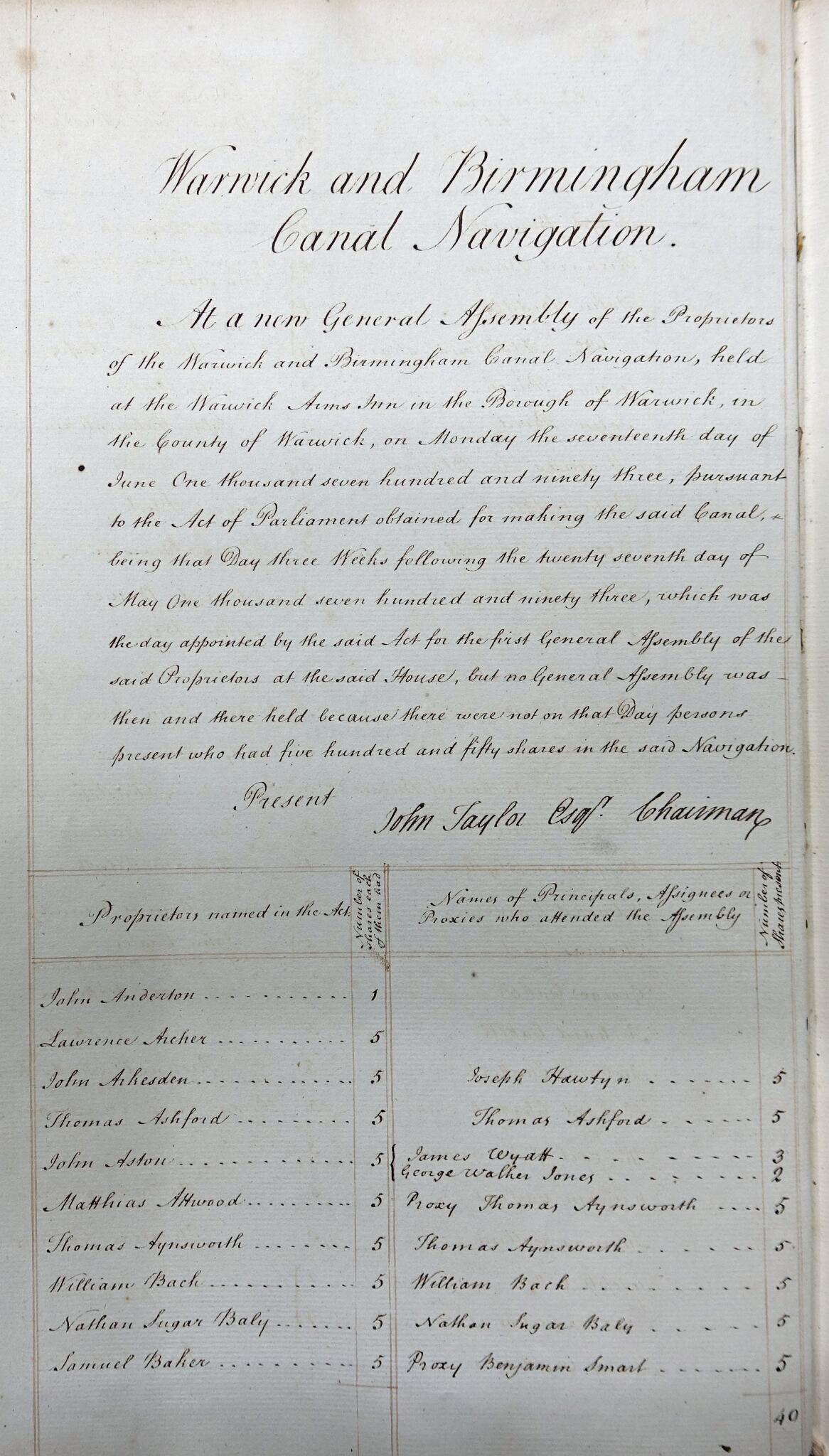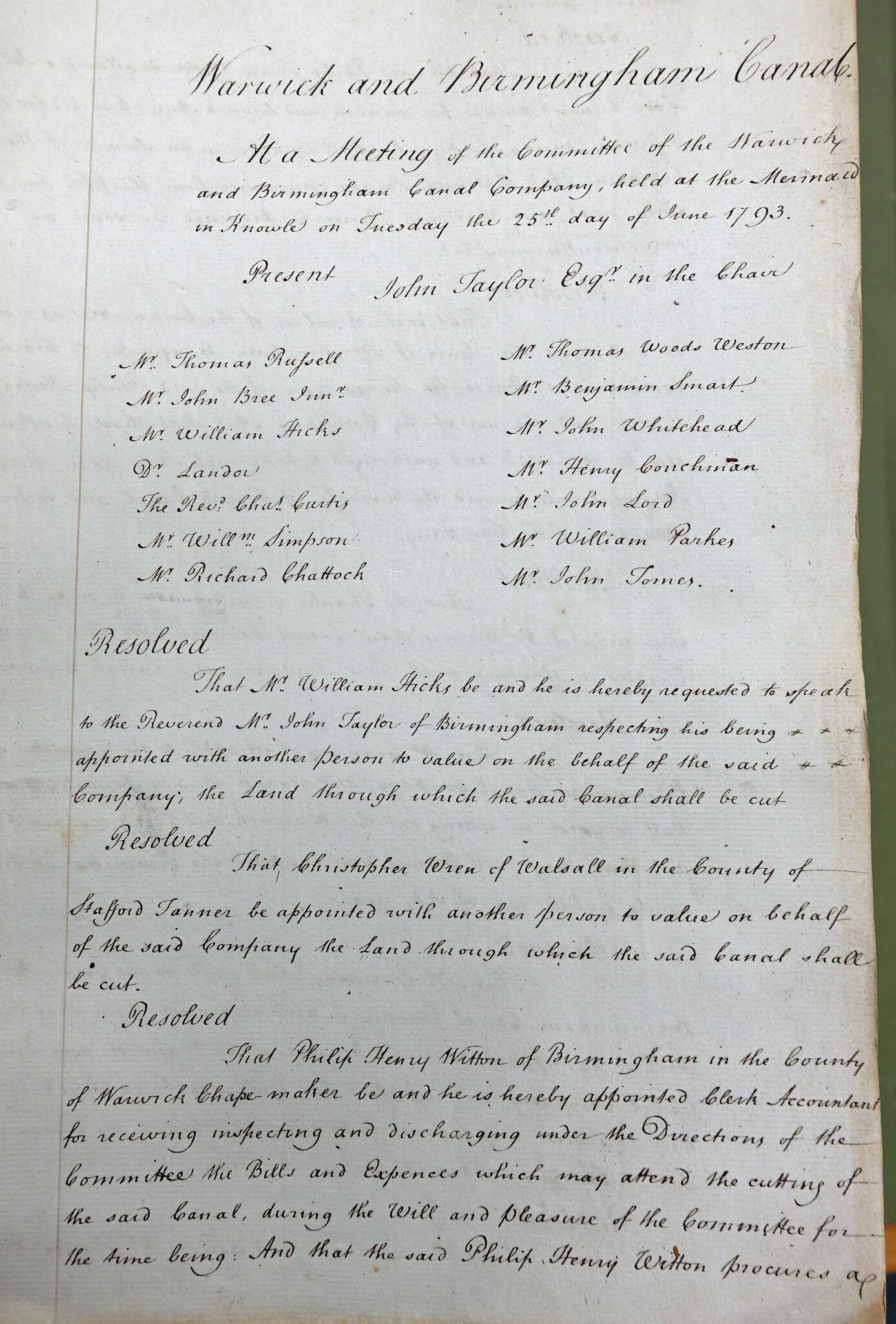 14 Minutes of the first meeting of the canal company on 25th June 1793