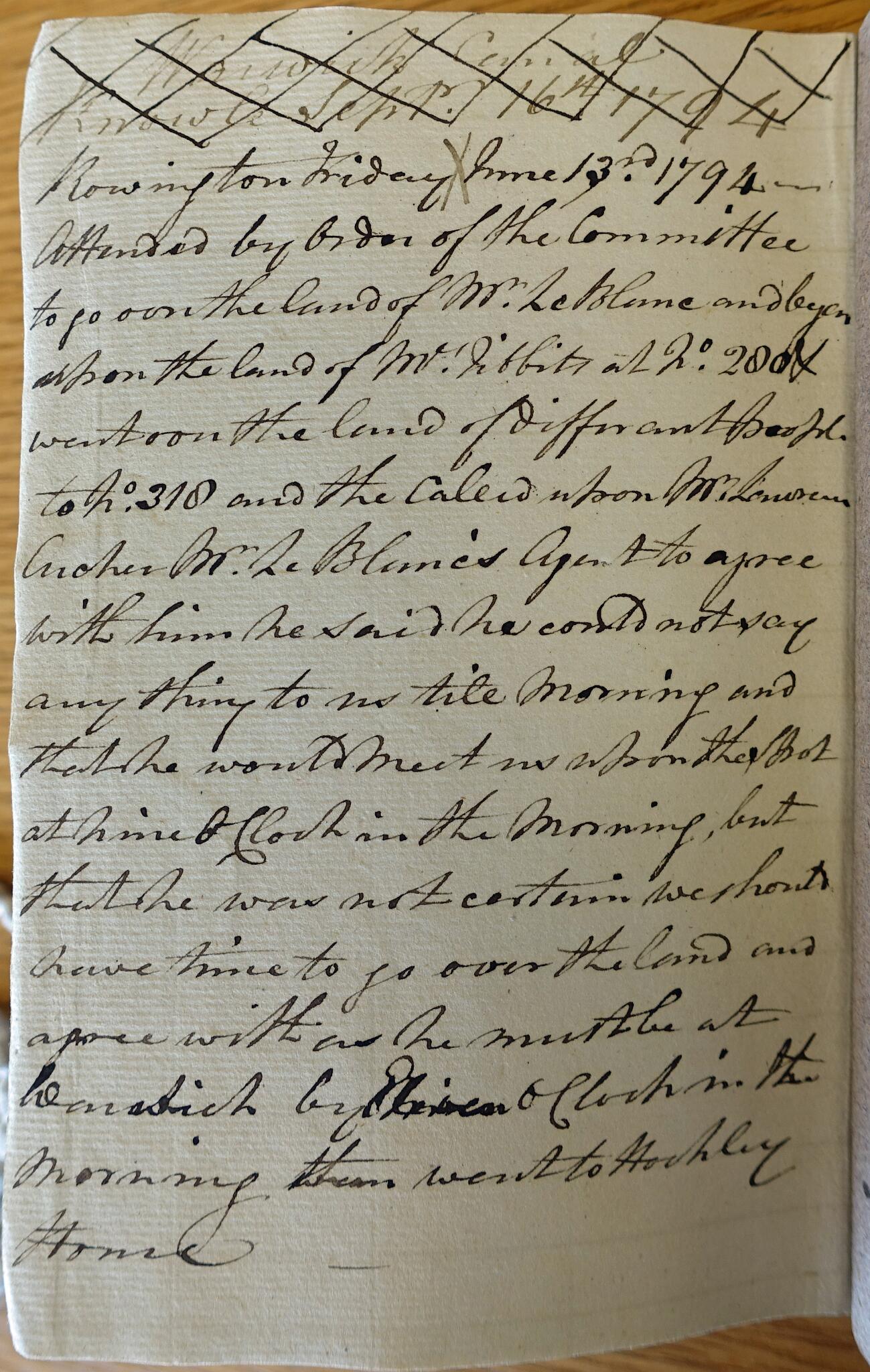 11 Extract from the land valuer's notebook recording dealings with Robert LeBlanc who owned land in Rowington and was playing hard to get in spite of being a shareholder.