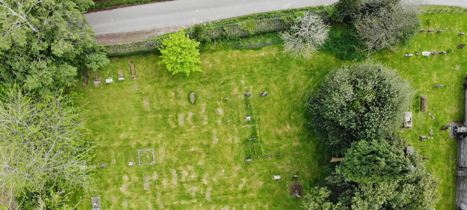 8 Northern, 1887, section of Haseley graveyard showing hints of a large number of now unmarked graves revealed by the 2022 drought