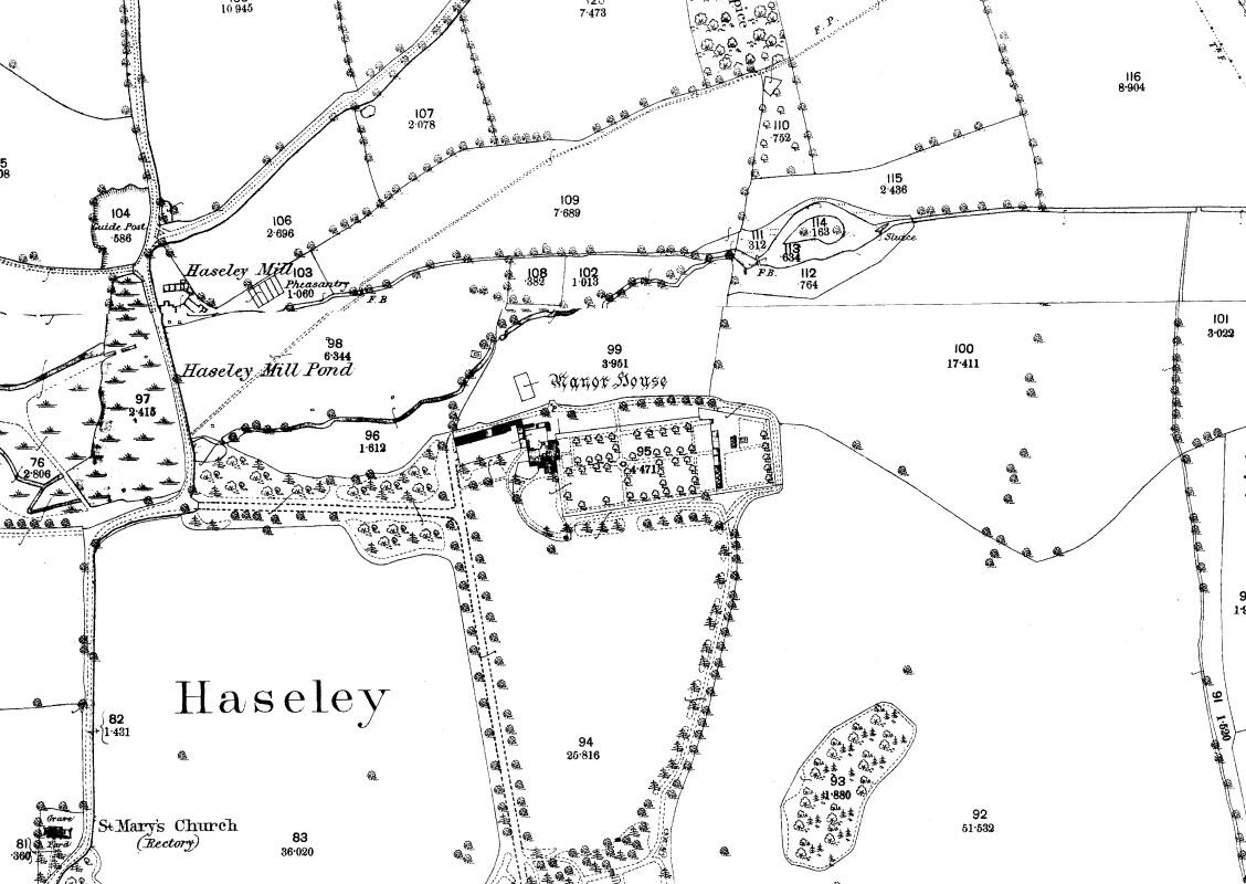 12 1887 map of Haseley showing Church, Old Manor and Water Mill