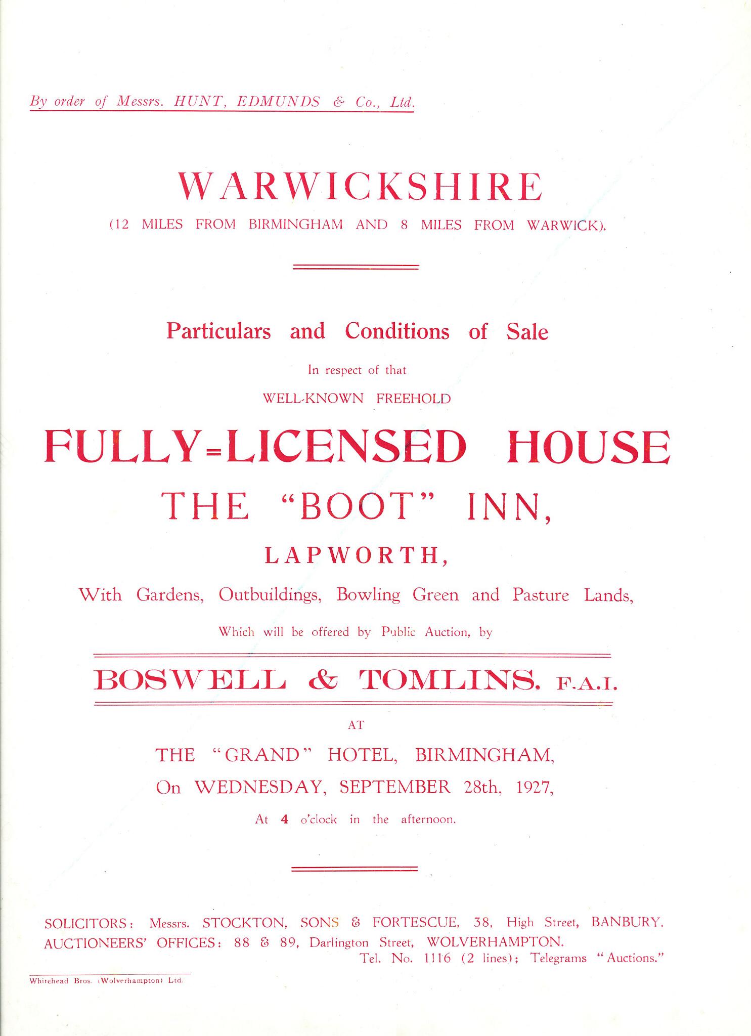 11 Sale particulars for The Boot from 1927. Full document as PDF file