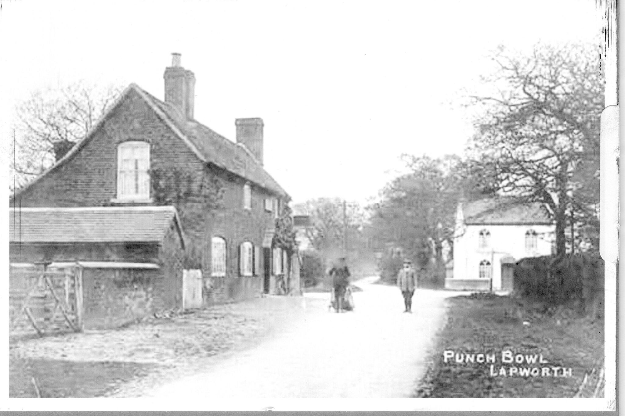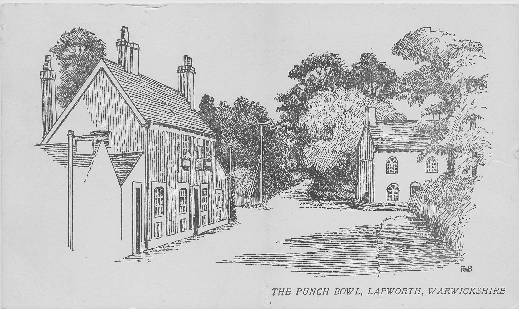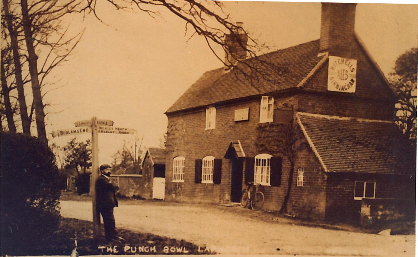 4 The Punch Bowl. Note the sign to Bedlams End. The Tom o'Bedlam was a pub at Chadwick End