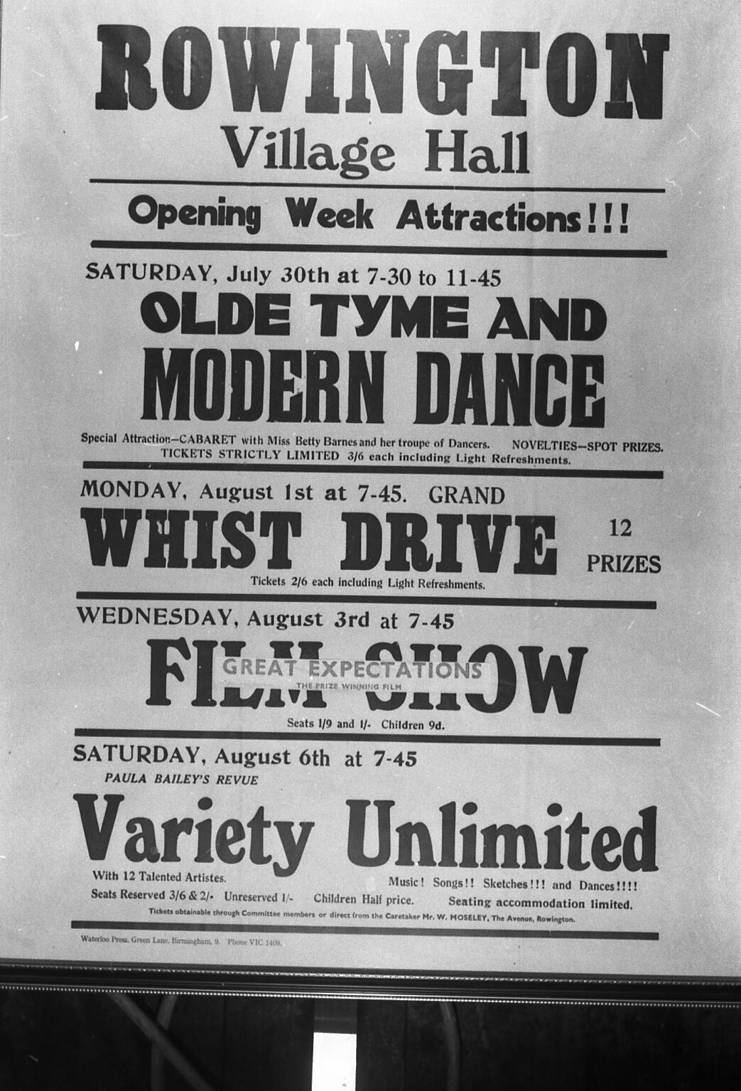3 Opening of Rowington Village Hall 30/7/49. Full document as PDF file here