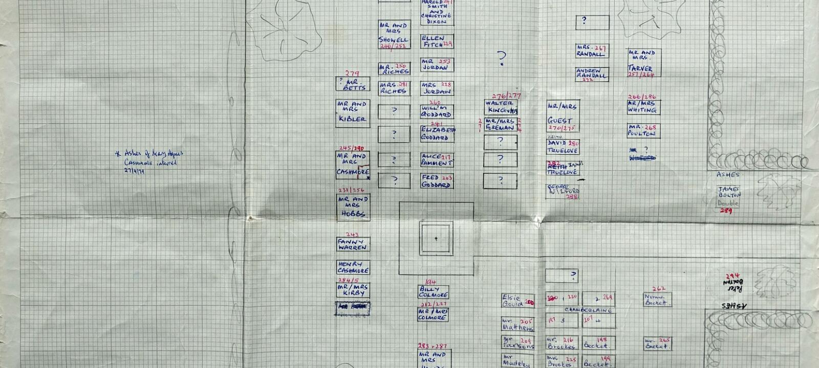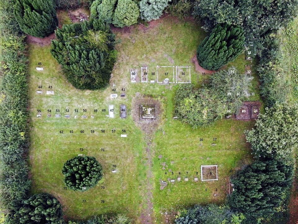 8 Aerial photo of Wroxall Burial Ground annotated with grave numbers