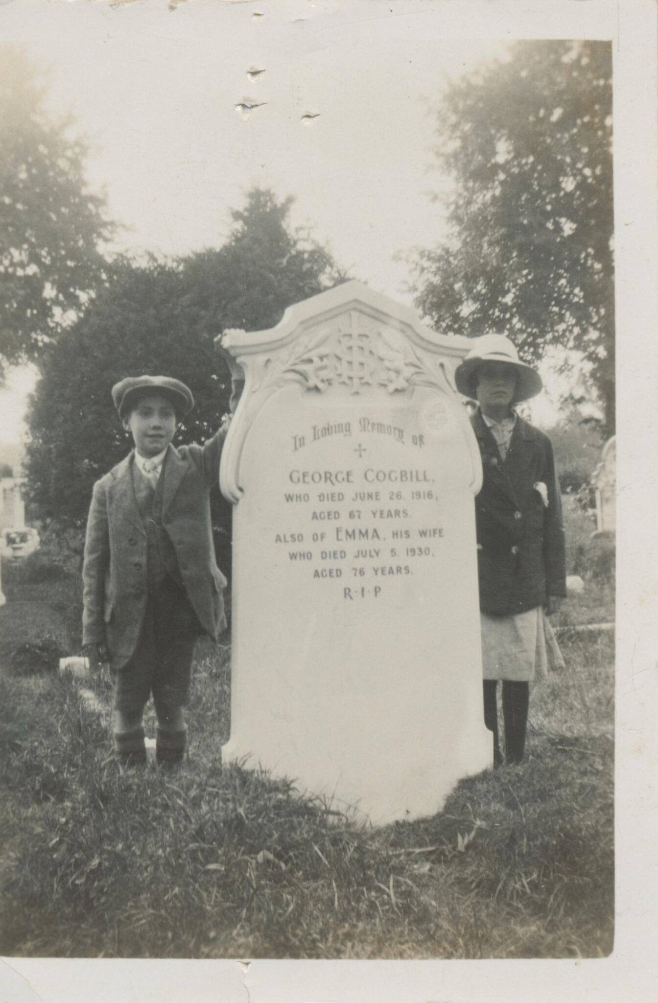 16 Memorial stone for George Cogbill and Emma (nee Emily Price). Edith Cogbill's parents. Edith married George Beardsmore in Jun 1919. The two children are assumed to be George Beardsmore (b Sept 1922) and his sister Emmie.