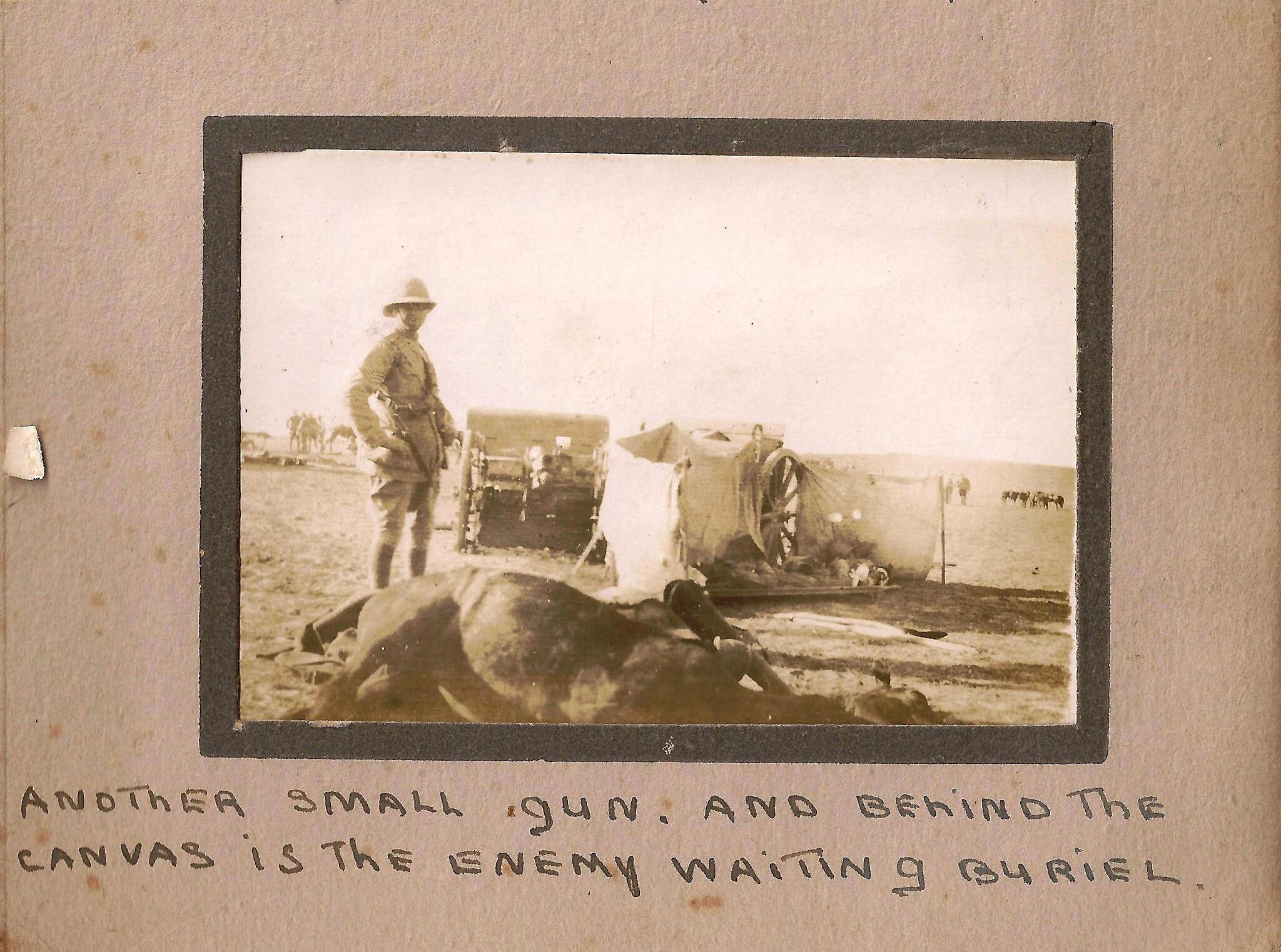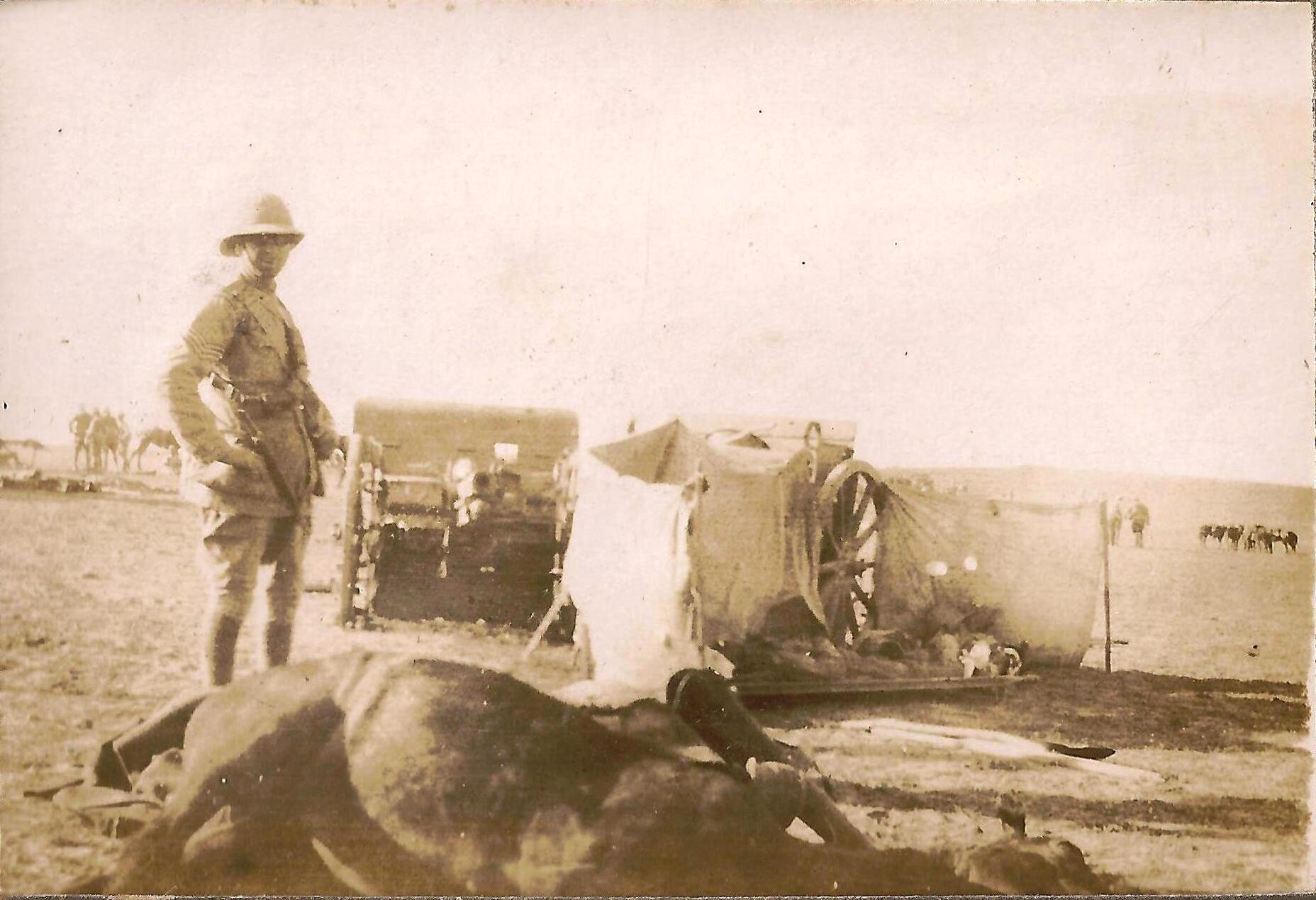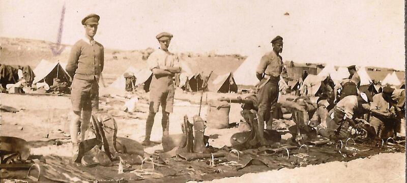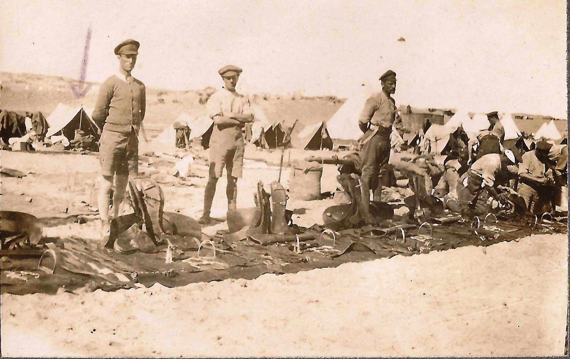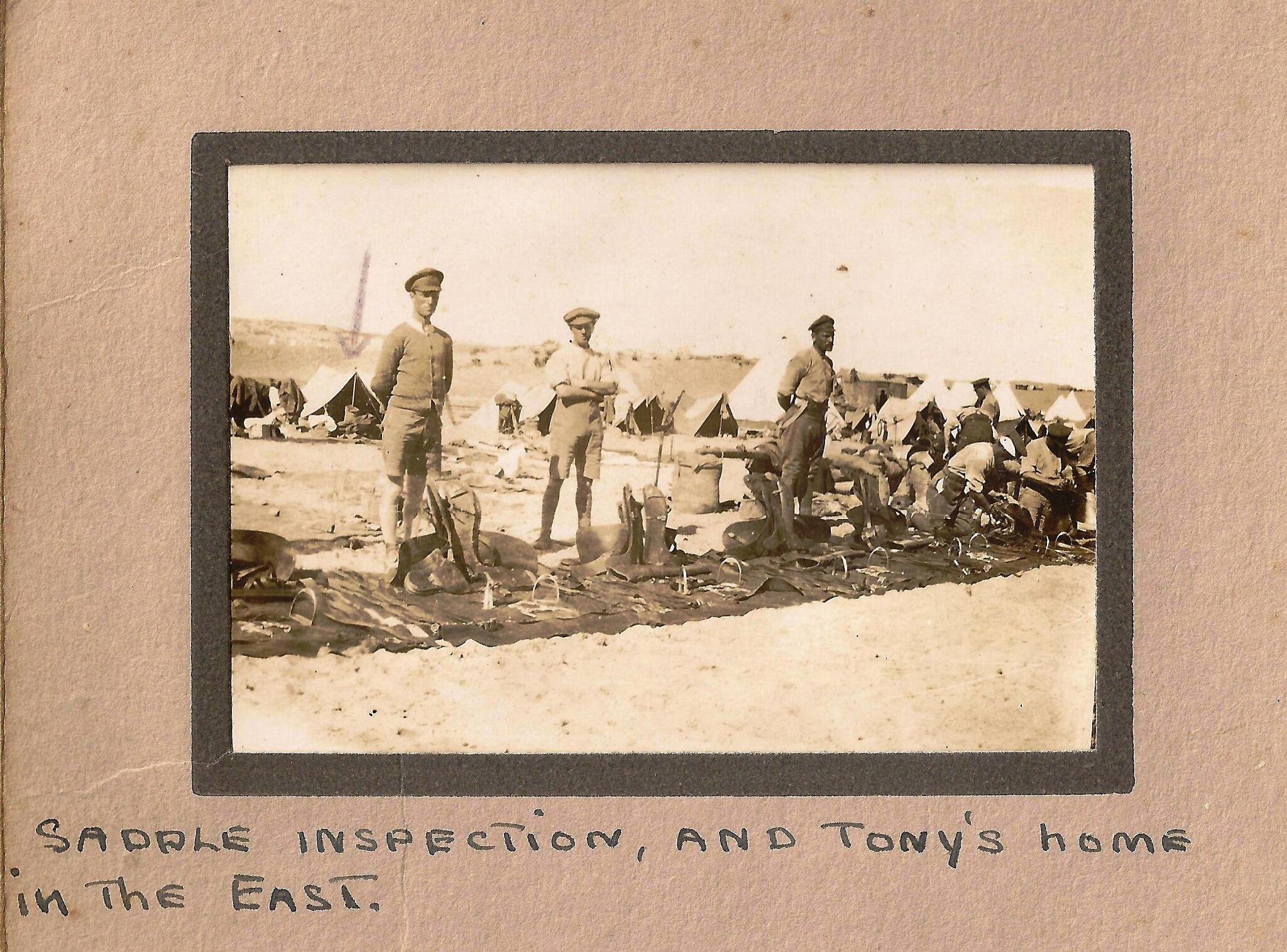 10 Detail of Saddle inspection from Anthony Hanson's album from when he served in the Warwickshire Yeomanry in Palestine in 1917-18. His tent is arrowed.