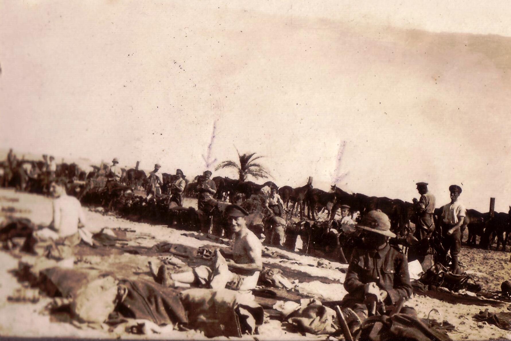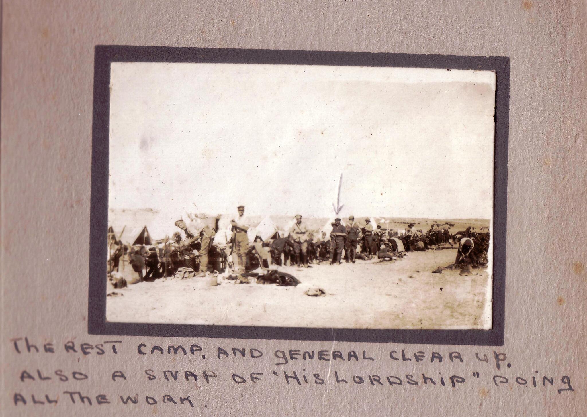 6 The rest camp from Anthony Hanson's album from when he served in Palestine in 1917-18. Anthony Hanson arrowed, centre.