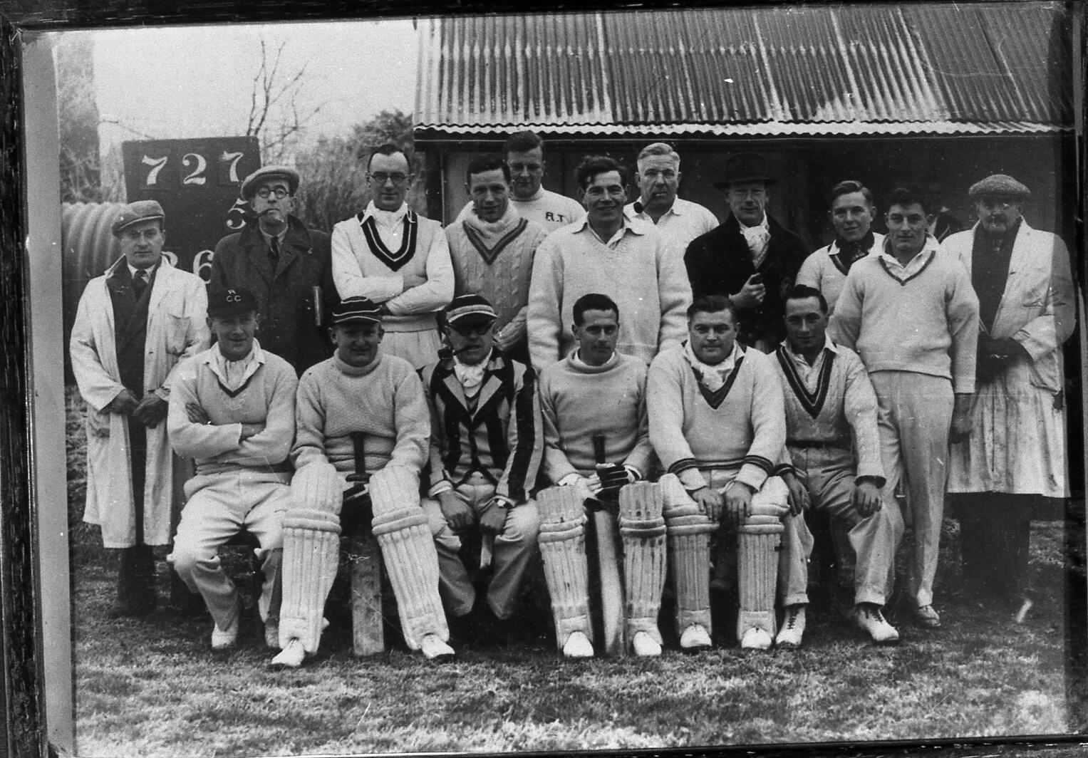 10 Cricket Club group at Rowington Club. Back (L-R): ?,?,?, Colin White, Daryl Dilly,?, Eric Johnson, Eric Sly, Ray Neale. Front: John Coleman, Dot Sly, Bill Sly