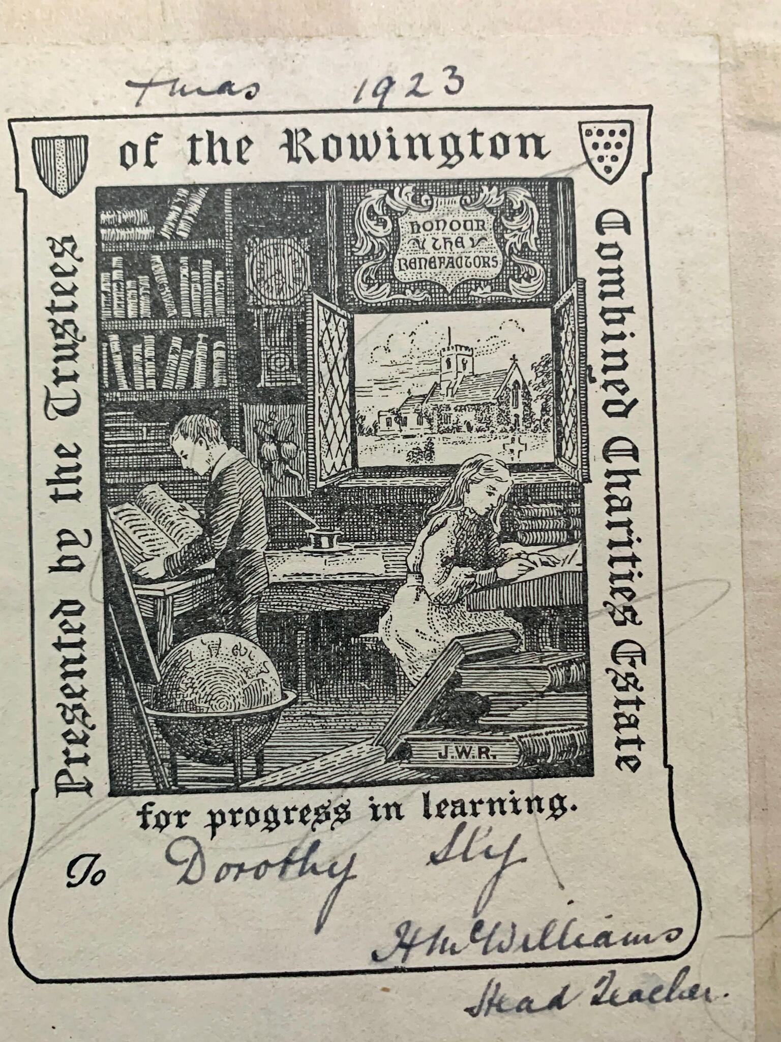 13 Book plate from Prize awarded to Dorothy Sly at Rowington School in 1923