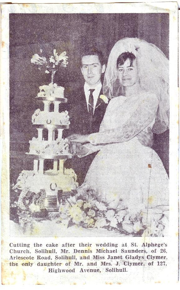 19 Wedding of Mr Dennis Michael Saunders and Miss Janet Gladys Clymer of 127 Highwood Avenue at Solihull