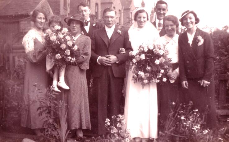 16 Mr and Mrs Harry Sweetman wedding group at Tyesley in 1935