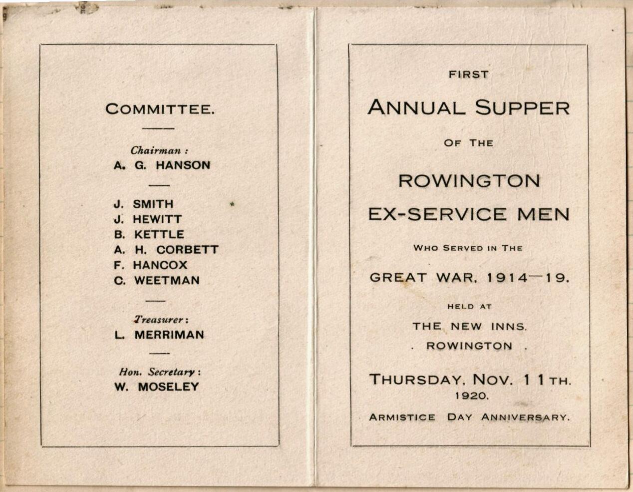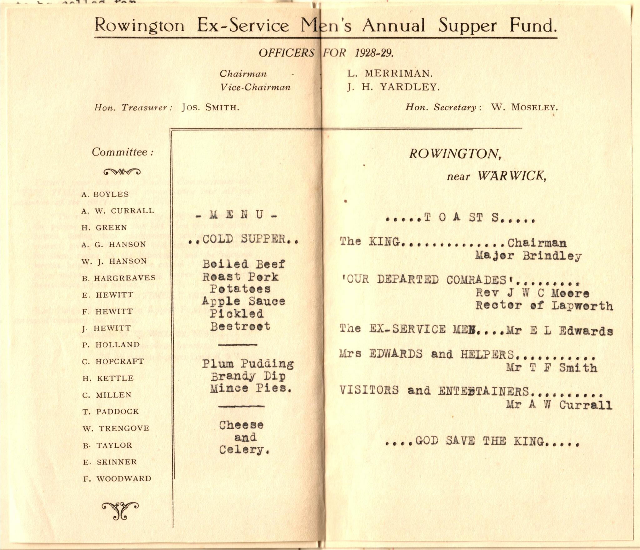 19 Programme from the final Ex-Servicemen's Supper held in November 2015