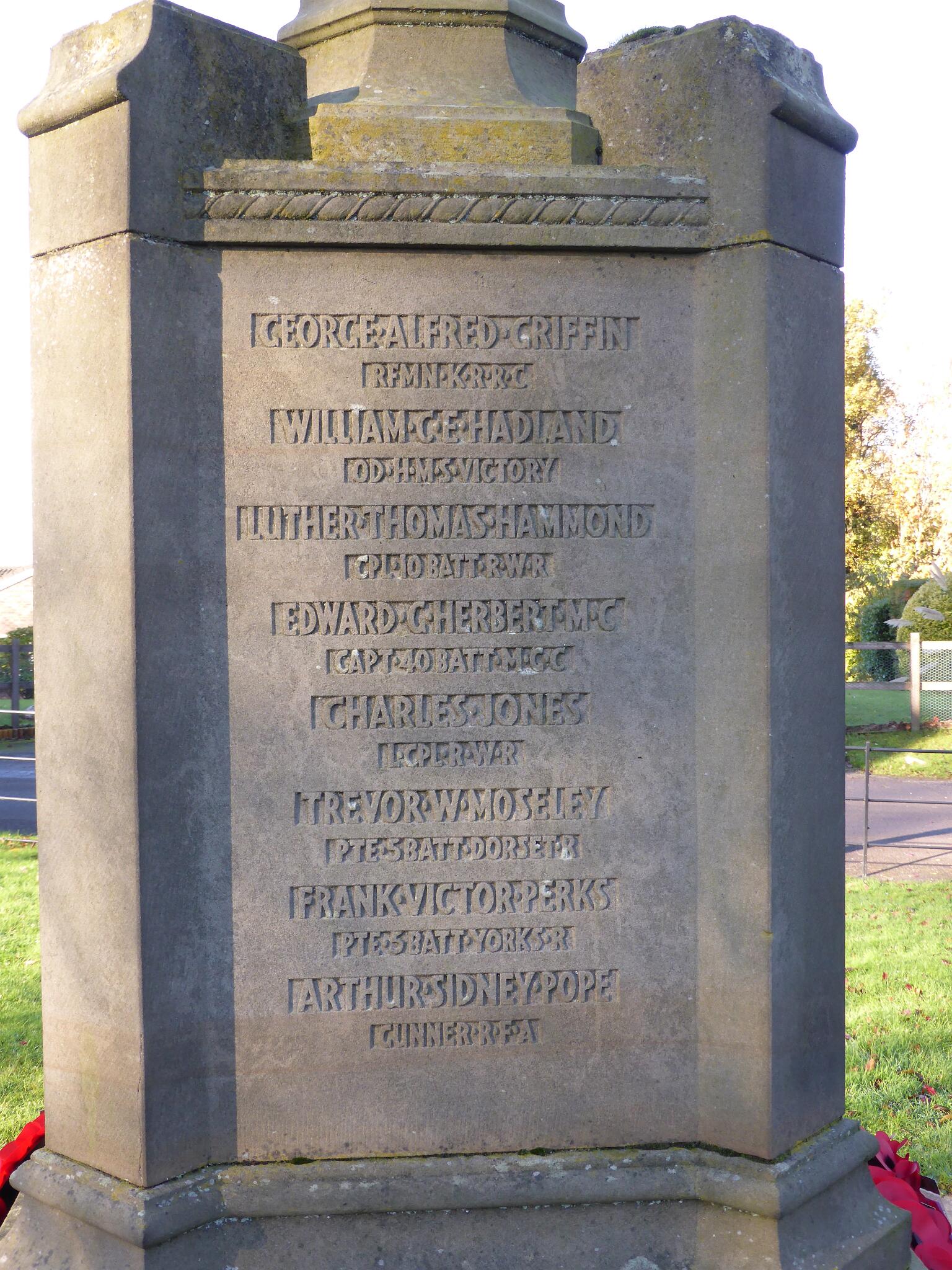 7 Lapworth War Memorial detail of South side